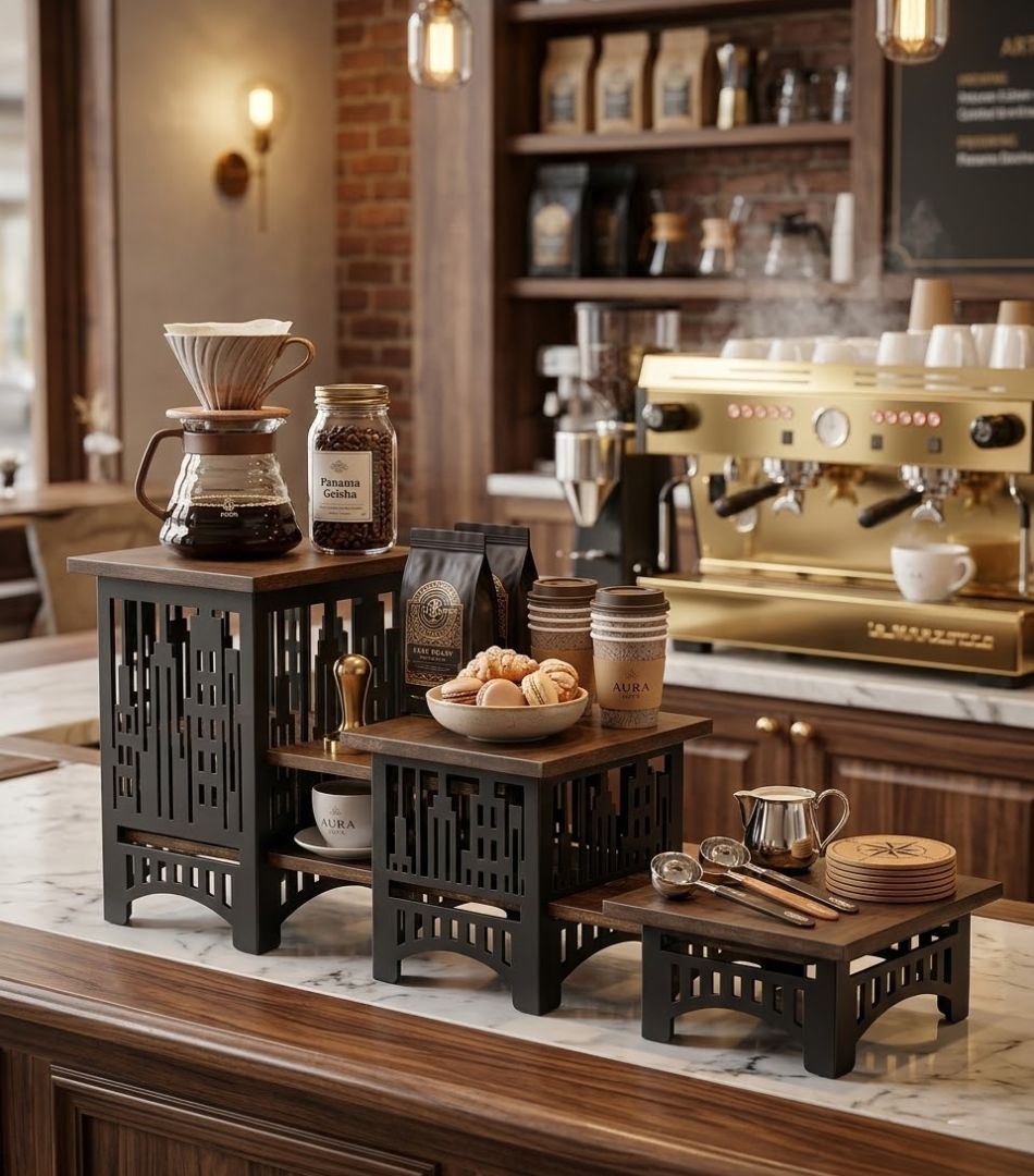 Commonly used in hotel buffet setups, bakery displays, and catering services, modern display stands add height, structure, and elegance to the table arrangement. Perfect for restaurants, banquet events, and food service displays, premium hospitality display stands and buffet risers help create a visually appealing and professional dining experience.
